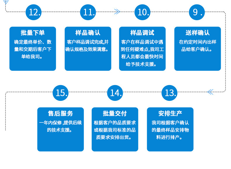 1)客户对样品进行调试测试,将调试情况反馈给我们,如果有必要,我们会根据反馈再次调整固件。